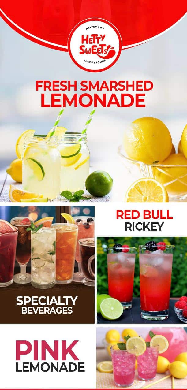 Fresh real lemons squeezed, topped with ice and choice of flavor (strawberry, orange, raspberry, blueberry, cherry, original, green apple)